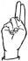 На ћирилици написано БОРИС БЕТЕГАЛО састоји се из 13 слова [?]. Исписано ћириличном једноручном азбуком за глувонеме: